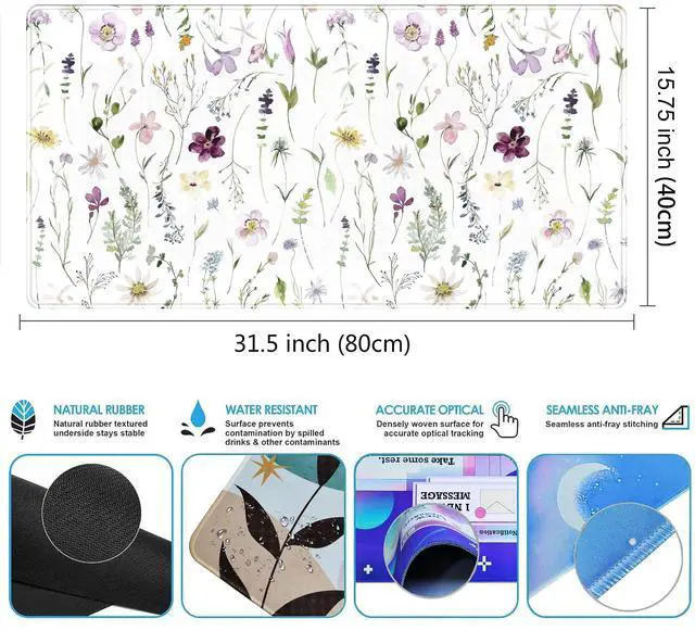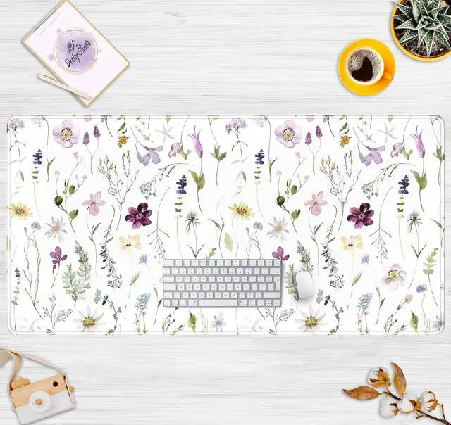 Cute Flower Mouse Pad Aesthetic Desk Mat Plants Large Extended Gaming Mousepad Floral XXL Desk Pad Keyboard and Mouse Mat 31.5''x15.75'', Desktop Decor Protectors Mats for Women Office Girl Gamer