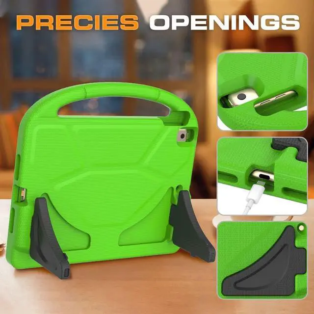 Compatibility- Designed for iPad 9th Generation (iPad 10.2" 2021, Model: A2602, A2603, A2604, A2605), iPad 8th generation (iPad 10.2" 2020, Model A2428 A2429 A2430 A2270), iPad 7th Generation (iPad 10.2" 2019, Model A2197, A2200, A2198) ^^ Shock Protection- Kids case for iPad 10.2 Inch is made from a durable, kid-safe, lightweight, and shock-resistant EVA material, your device is effectively protected from scratches, drops, bumps and impacts ^^ Built-in Kickstand- iPad 10.2 kids case comes with built-in stand, chooses optimal viewing and typing positions (2 Mode) based on your needs, also it's easy for both kids and adults to carry ^^ Precise Cutouts - It's easy to access all buttons, speakers, cameras and charging port, all the ports are where they should be ^^ Built-in Screen Protector- With built-in crystal-clear screen protector, completely covers your tablet, protects your Pad 9/8/7 Gen from scratches and dust