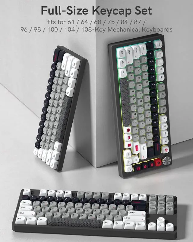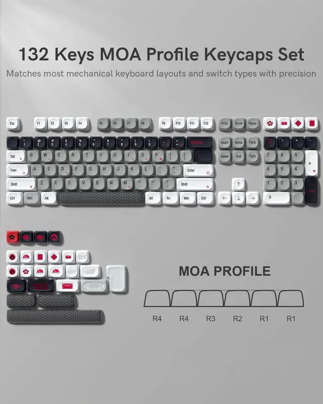 Wide Compatibility: This keycap set includes 132 keys, covering standard layouts along with extra modifiers for flexibility. It is designed to fit most mechanical keyboards with cross-type switch stems and supports ANSI layouts in 60%, 65%, 75%, TKL, and full-size formats ^^ MOA