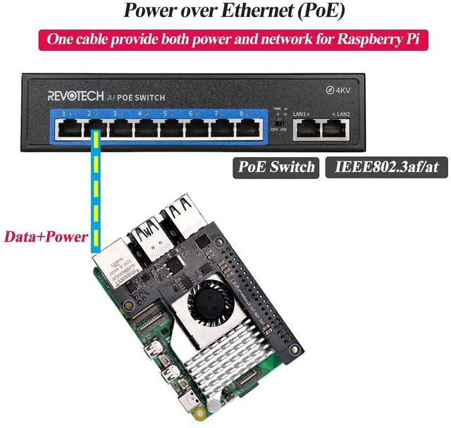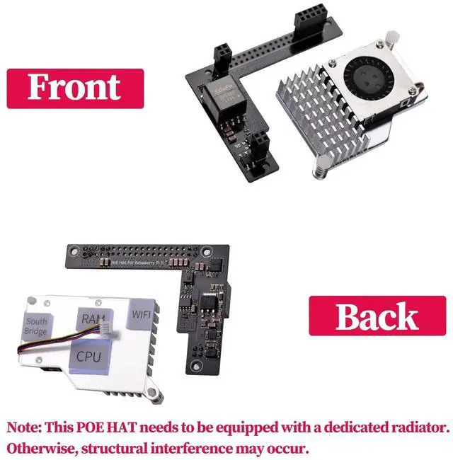 Note: This POE HAT needs to be equipped with a dedicated radiator. Otherwise, structural interference may occur. OverviewThe POE HAT is a POE accessory with IEEE 802.3 af Power Over Ethernet (POE) standard for the Raspberry Pi