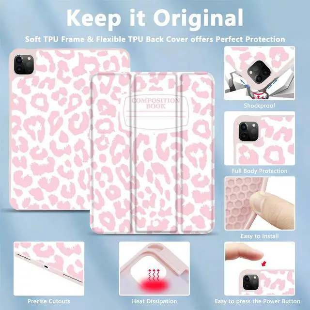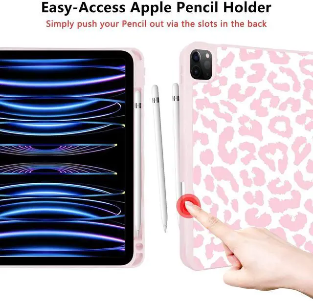 TopPerfekt for iPad Pro 11 Inch Case 2022(4th Gen)/2021(3rd Gen)/2020(2nd Gen) with Pencil Holder, TPU Shockproof Frame and Protective Leather Cover [Auto Sleep/Wake] Pink Leopard