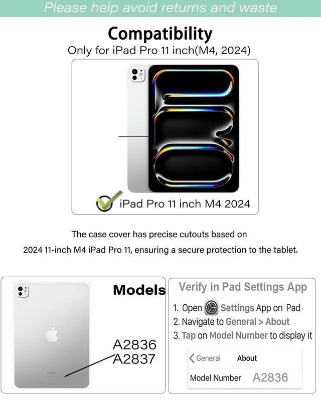 Compatibility Note: Please be informed the detachable 10.9 inch keyboard case is designed exclusively for the iPad Air 11 inch (M2, 2024), iPad Air 5th Generation ( 10.9 -inch, 2022), iPad Air 4th Generation ( 10.9 -inch, 2020), and iPad Pro 11 inch (2022/2021/2020/2018). To avoid returns and waste, kindly verify compatibility by checking at the back of your iPad or navigating to Settings > General > About. NOT for iPad Pro 11 inch(M4, 2024) & 10.9 iPad 10 Gen. ^^ Stable Stand and