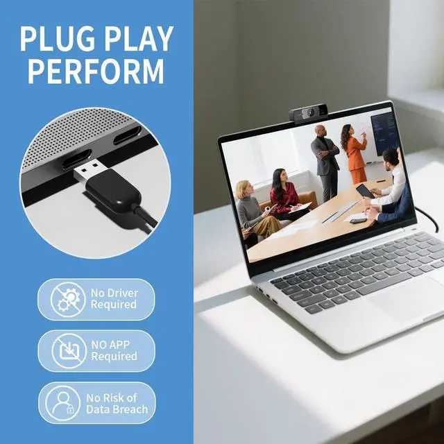 ^^ Built-In Noise - Cancelling Microphone - The noise-canceling microphone reduces background noise to enhance the sound quality of your video. Even in noisy surroundings, viewers can hear your voice loud and clear. Great for webinars, video conferencing, and live streaming. ^^ Easy Plug and Play - Our easy-to-operate HD webcam works with USB 2.0, USB 3.0 and USB 3.1 and doesn't require you to download additional drivers and it comes equipped with a 3.3 ft USB power cable. Just plug the webcam into the USB port of your devices and use it right awayYou need to open a video call to use it ^^ Automatic Light Correction - The camera components is equipped with automatic light correction technology and can automatically adjust the image brightness and restore color according to the ambient light, helping you achieve the best optical effect.