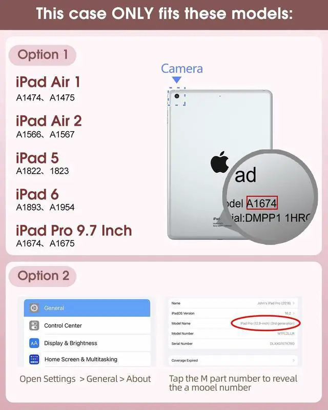 • Compatibility: This case is specifically designed for apple for iPad 5th/6th, Air 1st/2nd, Pro 9.7. Please confirm your tablet model before placing an order