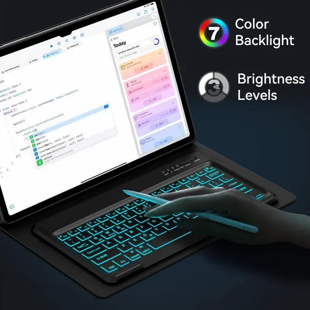 And tab s9 ultra case has multiple viewing angles and S Pen holder. You can choose your optimal angle to use your tab and don't worry about S Pen get lost or in the way ^^ Multi-View Angles and S Pen HolderThe high quality galaxy tab s10 ultra case is made of premium vegan exterior composition leather and soft anti-slip lining, a protective keyboard cover gives your tablet 360front and back protection from accidental scratches. And tab s9 ultra case has multiple viewing angles and S Pen holder. You can choose your optimal angle to use your tab and don't worry about S Pen get lost or in the way ^^ 7 Colors Backlight Keyboard & Long Battery LifeThe s8 ultra tablet case with keyboard has 7 backlight colors and 3 brightness levels.