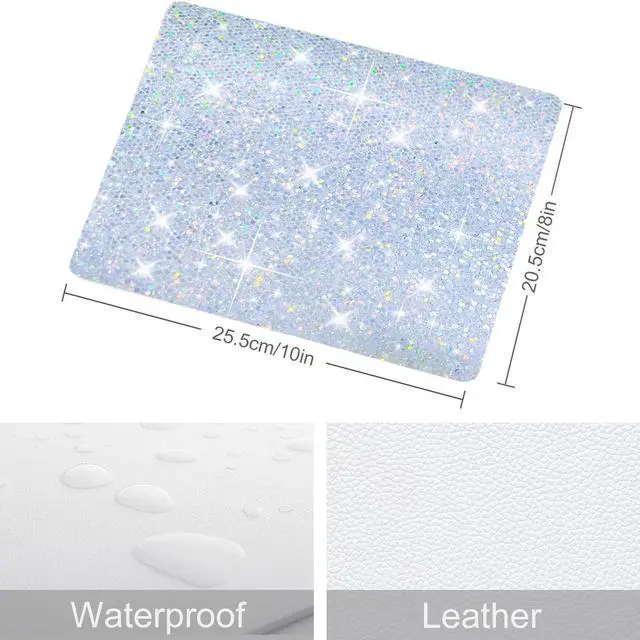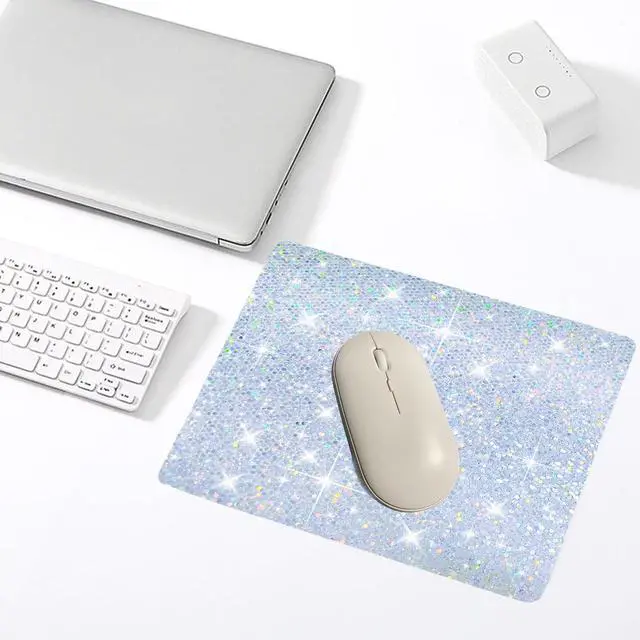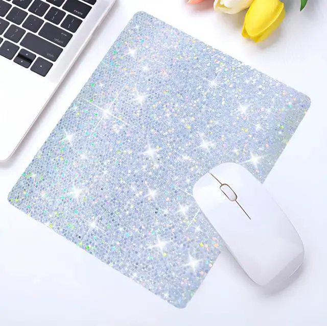 Stylish Sparkle Design Add a touch of glam to your workspace with this shimmering silver glitter mouse pad, perfect for fashion-forward professionals and gamers alike. ^^ Smooth & Precise Surface Optimized for all mouse types, the soft-textured surface ensures smooth tracking and enhanced precision for work or play. ^^ Non-Slip Rubber Base Features a durable, anti-slip rubber backing that keeps the pad securely in place during intense gaming or long work sessions. ^^ Comfort Meets Functionality One-size design with just the right cushioning to support your wrist and reduce fatigue over extended use.