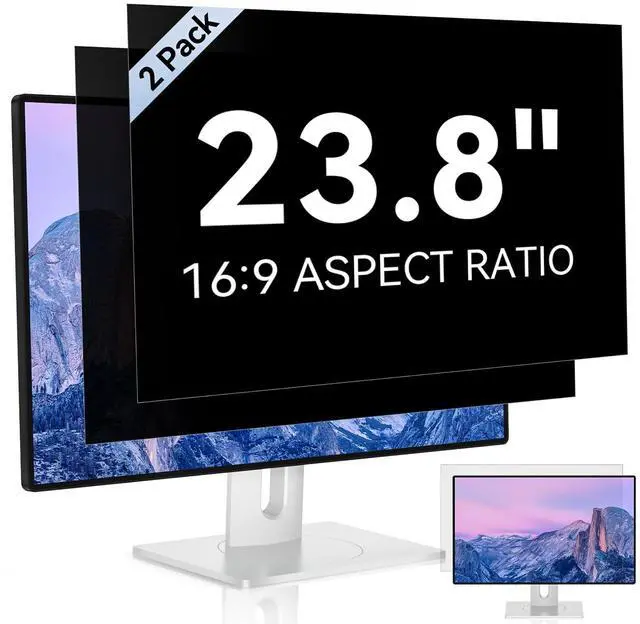 PRIVACY FILTER DIMENSIONS Width: 20 3/4" (528 mm), Height: 11 11/16" (297 mm), Diagonal: 23.8" ( 604.52 mm) - Aspect Ratio 16:9. Mamol computer privacy filters are designed to be perfectly compatible with HP, Samsung, Dell, Lenovo, Acer, Asus, LG, ViewSonic and other brands of monitors. Please check the width and height dimensions of your computer screen before ordering. ^^ ENHANCED PRIVACY PROTECTIONMamol 23.8 in computer privacy filter keeps your electronic information confidential, making it excellent for use in high traffic areas. the computer privacy screen 23.8 inch is designed with advanced microlouver technology to block visibility at around 30 degrees and black out screens completely near 60 degrees. ^^ BETTER HD CLARTIYMamol 23.8 inch computer privacy screen Shield adds an extra layer of AR Ultra HD light transmission compared to others. It maintains the high definition of the screen without sacrificing too much screen brightness. It won't reduce the brightness and cause eye fatigue because of the privacy screen installed on the screen. ^^ EYES PROTECTION This blackout privacy screen greatly reduces eye strain and minimizes potential hazards to vision. It filters 99.9 % of UV rays and suppresses 98% of blue light. As a reversible 23.8 inch privacy screen filter: The glossy side of the protector provides extra clarity and greater privacy, and the matte side minimizes glare and distracting reflections. Satisfy your different daily uses as needed. ^^ ANTI SCRATCH & WASHABLE Our privacy anti-glare film has a surface enhancement layer to protect the privacy filter from scratches and fingerprints. It is washable and reusable. Even after prolonged use, you will get a brand new privacy screen for your desktop computer monitor after cleaning. Very Durable! ^^ TWO INSTALLATION OPTIONS 1) Apply clear adhesive stickers directly on the monitor privacy screen filter to hold it in place on the monitor screen itself; 2) Install these plastic slide mount tabs on the outer rim of the screen to hold the privacy screen in place (for computer screens with a raised bezel only), allowing you to slide the filter on and off the screen as needed. All accessories and installation instructions are included in the packaging. ^^ LIFETIME FREE SUPPORT Mamol computer privacy screen filters are protected under Mamol lifetime policy and if anything happens we will send you a new privacy screen at absolutely no cost. So please don't hesitate to place an order, giving your computer screen best privacy and protection while working in travel or open workspaces.