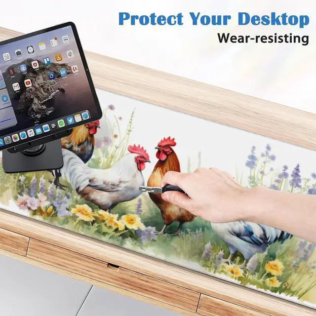 Environmental, and safe to use. ^^ Soft and Non-slip Rubber BaseThe soft and dense non-skid nature rubber base keeps the pad firmly in place, it can effectively prevent the mouse and keyboard from sliding and moving for stable operation. The desk pad is flexible enough to be rolled up for easy transport, to move around so you can work or game wherever you want. ^^ Suitable for many occasionsLarge enough size can protect the desktop from abrasion and liquid spills. Works well on all types of desks including wood, glass, leather, metal, marble desk and more.