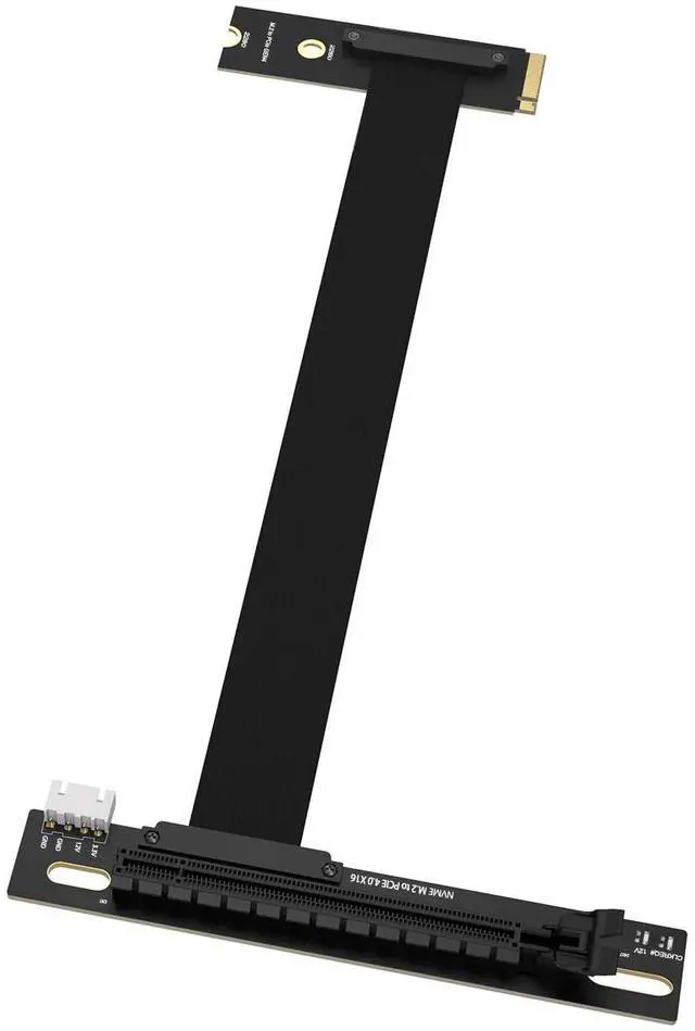 Key Features: Converts M. 2 NVMe (M-Key) to standard PCIe x16 slot (supports x4 bandwidth only) Compatible with PCIe 4.0 / 3.0 / 2.0 GPUs, NICs, SSDs, and moreFlat & foldable cable design ideal for compact and custom buildsEMI shielding, gold-plated contacts, and thick copper PCB for performanceOptional 12V power via 4-pin FDD connector for enhanced stability
