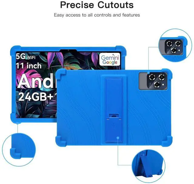 Protect your Tablet 11-inch tablet with this premium soft silicone case, designed for maximum durability and ease of use. Ideal for kids, the case features a non-toxic, eco-friendly material that provides a smooth and secure grip. The reinforced 4-corner shockproof design absorbs impacts, offering excellent protection against drops and bumps. An integrated adjustable stand allows for hands-free viewing, perfect for watching videos, playing games, or video chatting. Precision cutouts ensure full access to all buttons, ports, and cameras without removing the case, while its lightweight design keeps your tablet easy to handle.