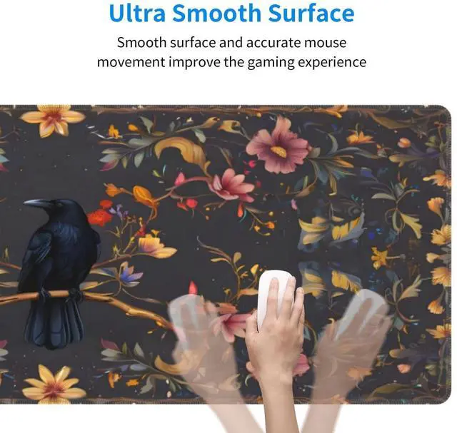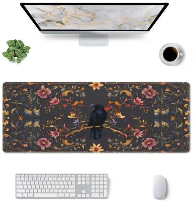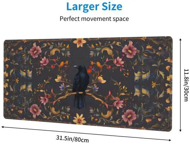 CANFLASHION Desk Pad,Office Desk Mat 31.5"11.8" Large Gaming Mouse Pad,Durable Extended Computer Mouse Pad,Waterproof Thick Big Mouse Pads Non-Slip Rubber Base Office Home Crow Floral