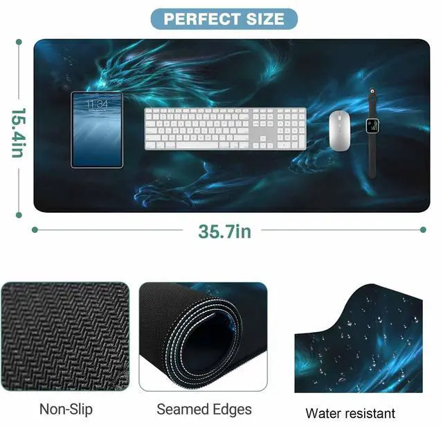 Y YIHANGBEST Mythical Dragon Blue Gaming Mouse Pad Fantasy Themed Creature Large Full Desk Keyboard Mousepad for Computer,Home,Office 35.4"X15.7"