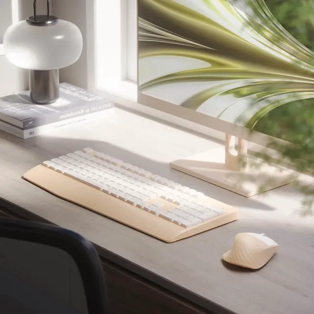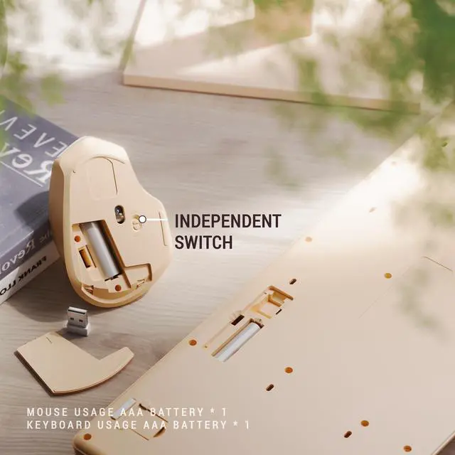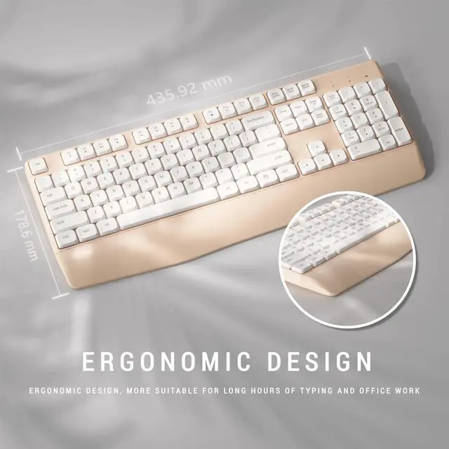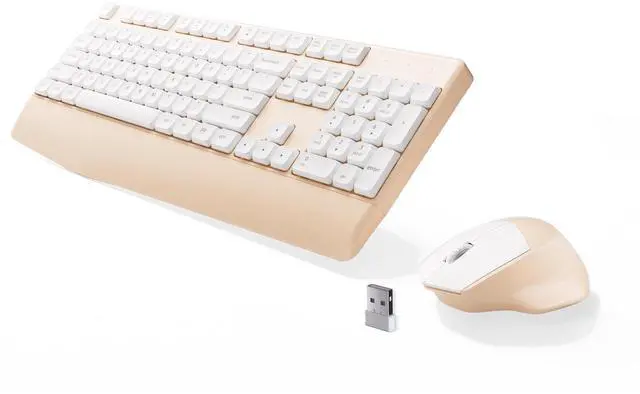 Ergonomic Comfort & Wrist Support Split-style full-size wireless keyboard and vertical ergonomic mouse with built-in cushioned wrist rest help reduce wrist strain and enhance all-day typing comfo ^^ Stable BK Chipset & 2.4GH z Wireless Powered by advanced BK chipset and 2.4GH z wireless tech for a stable, lag-free connection up to 33ft (10m). Easy plug-and-play setup with a single USB receiver ^^ Comfo Mouse with Silent Clicks & Power Button Ergonomic wireless mouse features whisper-quiet buttons for minimal noise and a convenient power switch to conserve battery when not in use ^^ Full-Size Keyboard with Multimedia Hotkeys Includes 104 responsive keys, numeric keypad, and 12 shortcut keys for productivity.