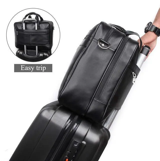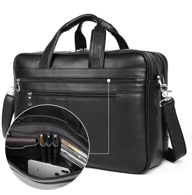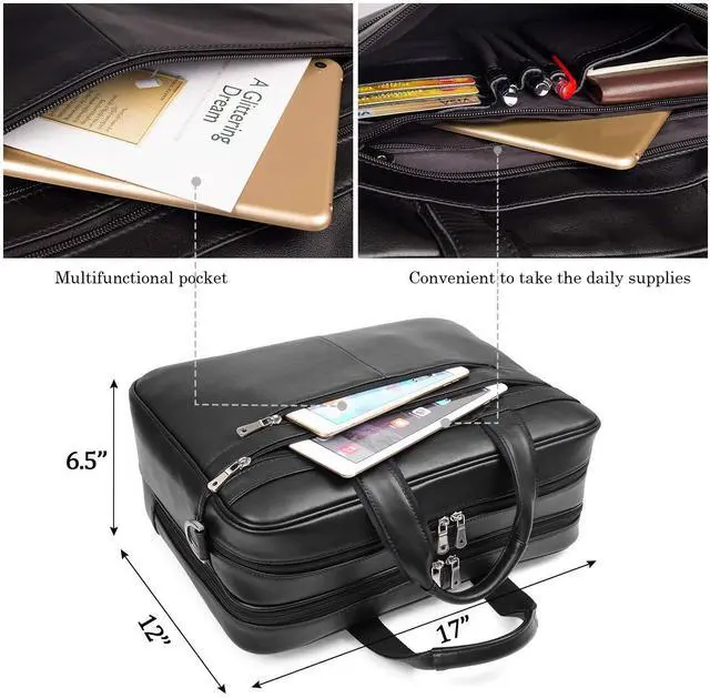 Material: mens briefcase bag is made from genuine soft nappa leather, the hardware parts are made of cast molding thick hardware Double stitched seams with thick stitching.