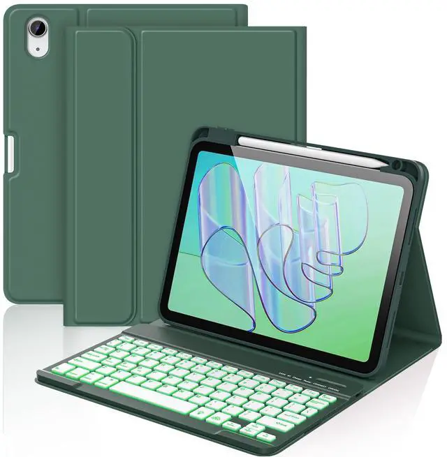aMZCaSE Keyboard Case for iPad (A16) 11th / 10th Generation- 7 Colors Backlight Detachable Folio Keyboard Cover for iPad (A16) 11th Gen 2025 & 10th Gen 10.9 inch 2022, Smart Wake/Up, Ink Green