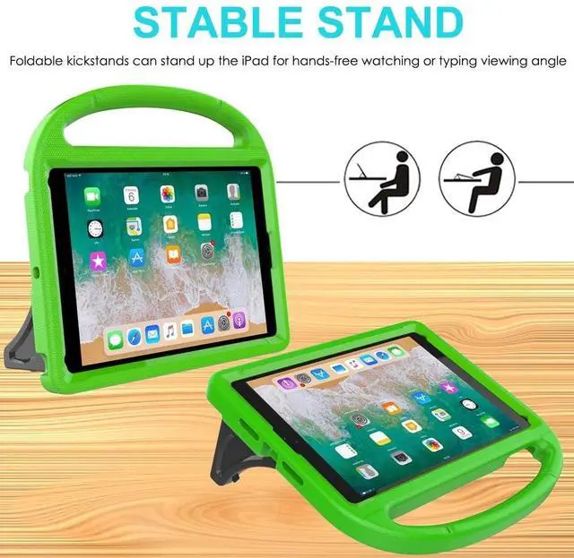 SUPLIK Kids Case for iPad 5th/6th Generation (9.7-inch, 2017/2018), iPad Air 2 Case with Screen Protector, iPad Pro 9.7 Durable Shockproof Protective Cover with Handle Stand for Kids, Green