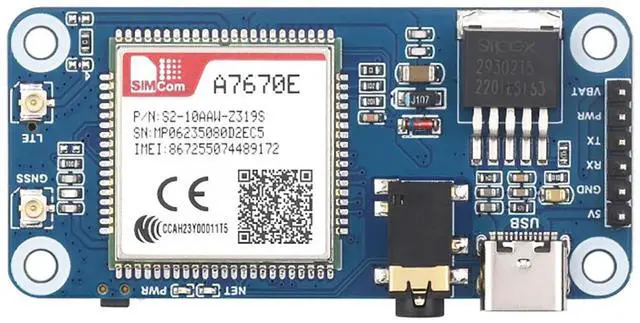 Breakout common used control pins of the A7670E module, make it easy to connect with hosts boards like for Arduino/STM32SIM card slot, supports 1.8V /3V SIM card2x LED indicators, easy to monitor the operating statusComes with development resources and manual (examples for Raspberry Pi/Jetson Nano/Arduino/STM32)Package include1. A7670E Cat-1/GNSS HAT x12. USB-A to USB-C cable x13. FPC Antenna x14. GPS Antenna x15. Screws pack x1