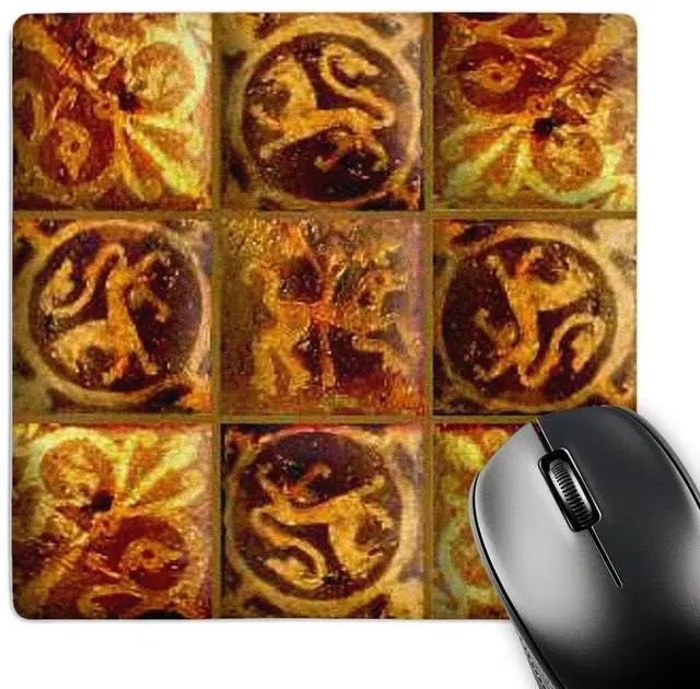 Antique Tile Pattern Mouse Pad is 8" x 8" x. 25" and is made of heavy-duty recycled rubber. Matte finish image will not fade or peel. Machine washable using a mild detergent and air dry.