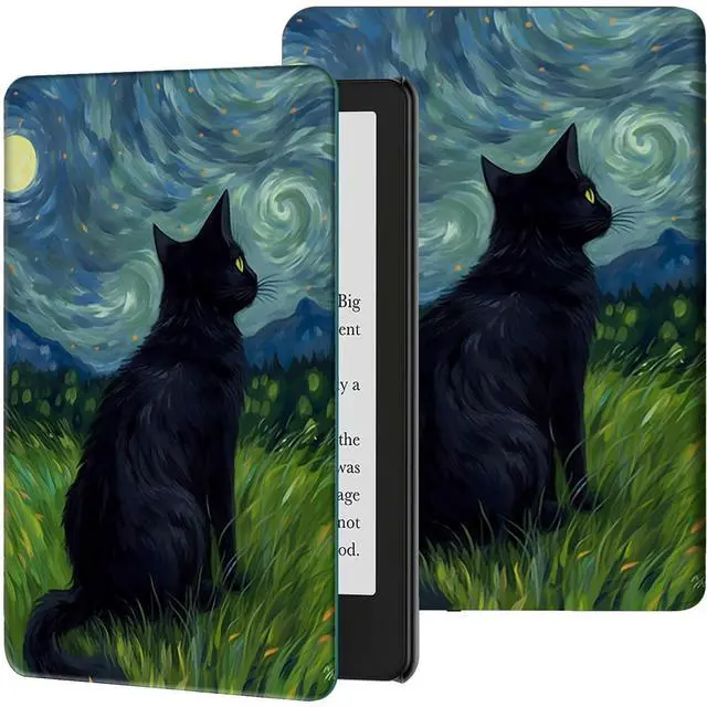 Rossy Case for 6" All-New Kindle 11th Generation 2022 Release (ONLY Fit 6 inch Basic Kindle Case 2022) Slim PU Leather Adjustable Stand Smart Cover with Auto Wake/Sleep,Galaxy Black Cat