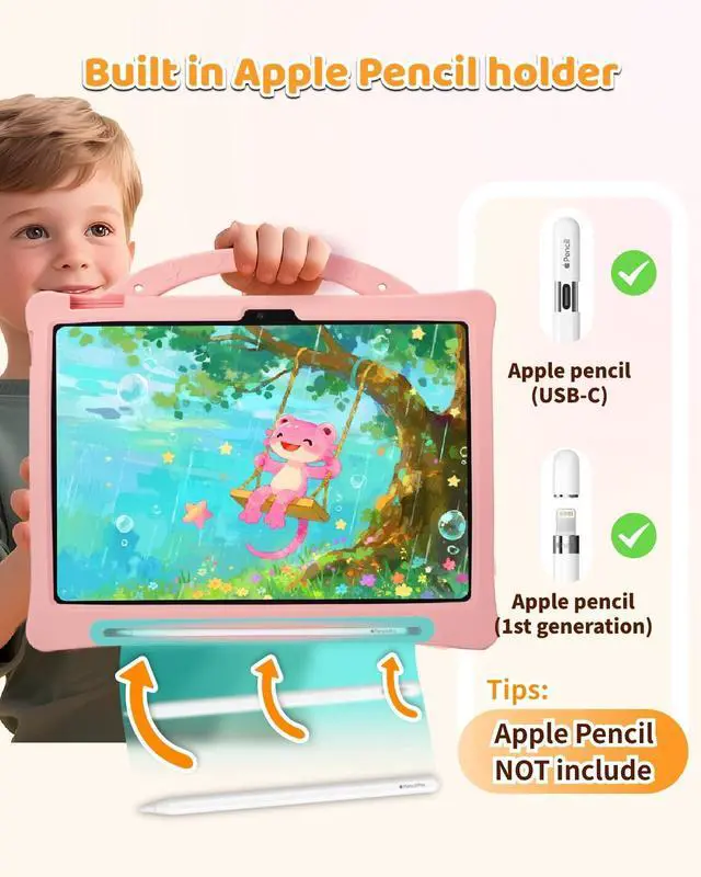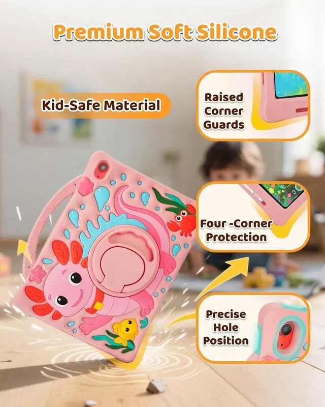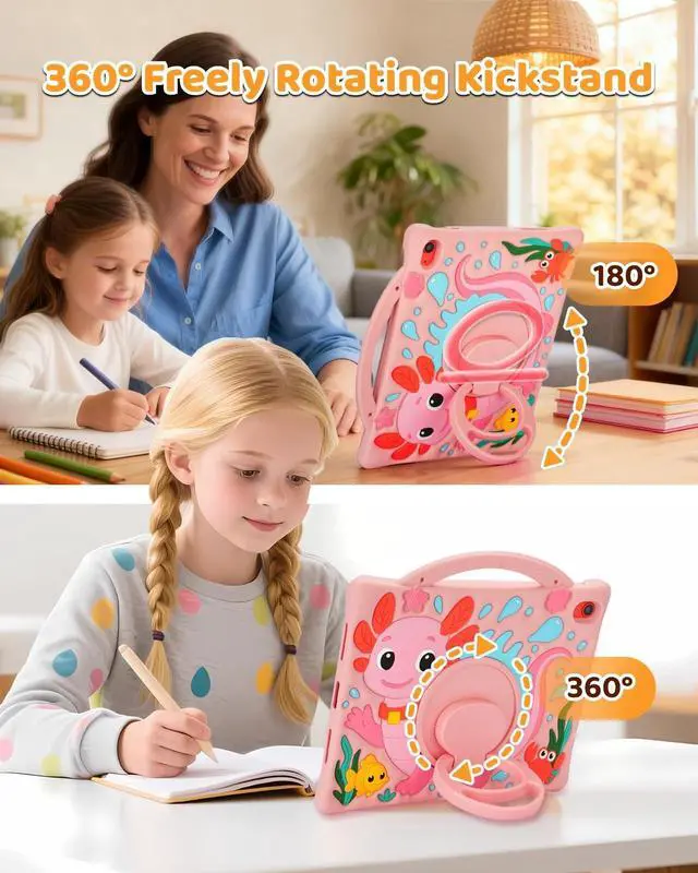 Kid-Friendly iPad Case with Rotating Stand (Axolotl Design) Keep Your Childs iPad Safe & Secure with This Fun, Protective Case! Give your child the perfect iPad companion with our 3D Axolotl iPad Case, designed specifically for for iPad Pro 11 inch (2022/2021/2020/2018 model), iPad Air 6th (11 inch, M2 M3), iPad Air 5/4 ( 10.9 -inch, 2022/2020). Whether for school, play, or creative projects, this case delivers military-grade protection, kid-friendly portability, and a fun STEM-inspired design that kids love!