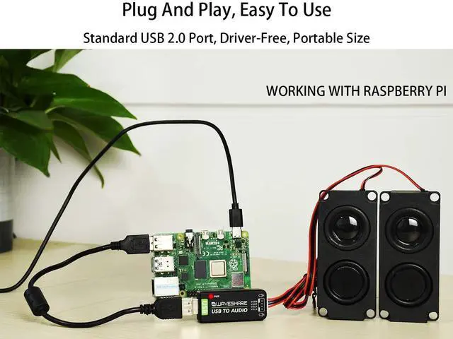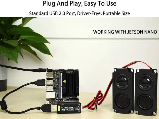 USB sound card/USB audio module, driver-free, external audio converter with 8 5W Speaker for Raspberry Pi/Jetson NanoUSB TO AUDIO Module FeaturesUSB sound card, USB audio module, external audio converter for Raspberry Pi and Jetson NanoSupport recording and playback, stereo codec, Driver-free, Plug and