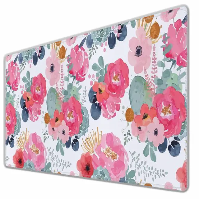 Y YIHANGBEST Pink Floral Mouse Pad Red Peonies,Green Plants Leaves Keyboard Mat Large Gaming Mousepad for Desk,Office,Bed 35.4"X15.7"