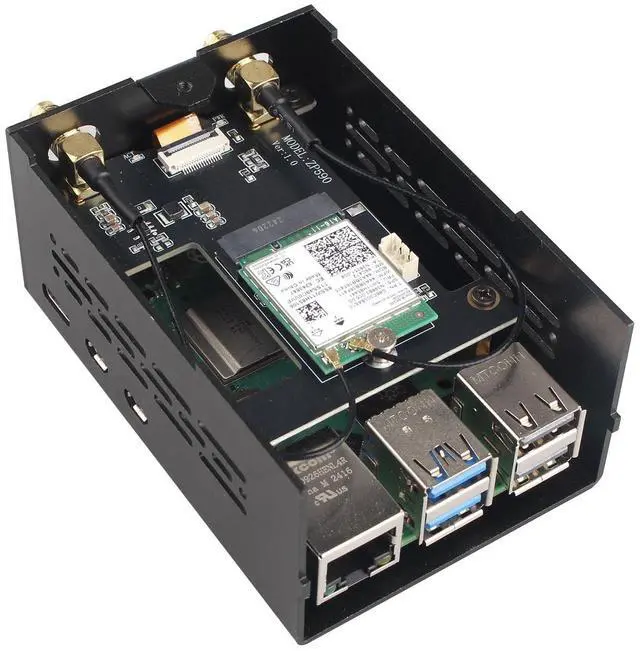 ZDE ZP590A PCIe to WiFi7 6 6E 5 HAT Expansion Board WiFi 7 Adapter with Aluminum Case ZC501 PCIe Peripheral Board for Raspberry Pi 5 2GB 4GB 8GB 16GB
