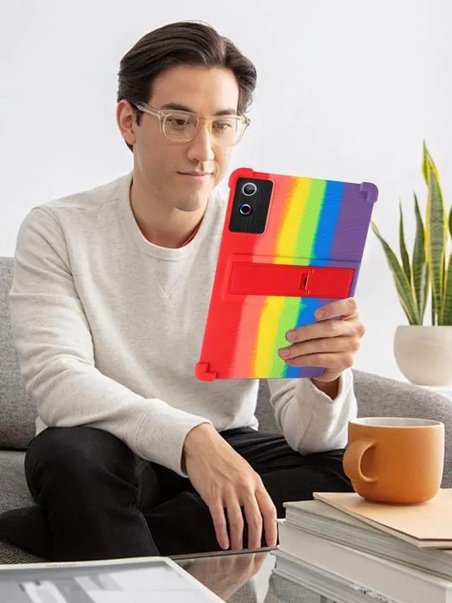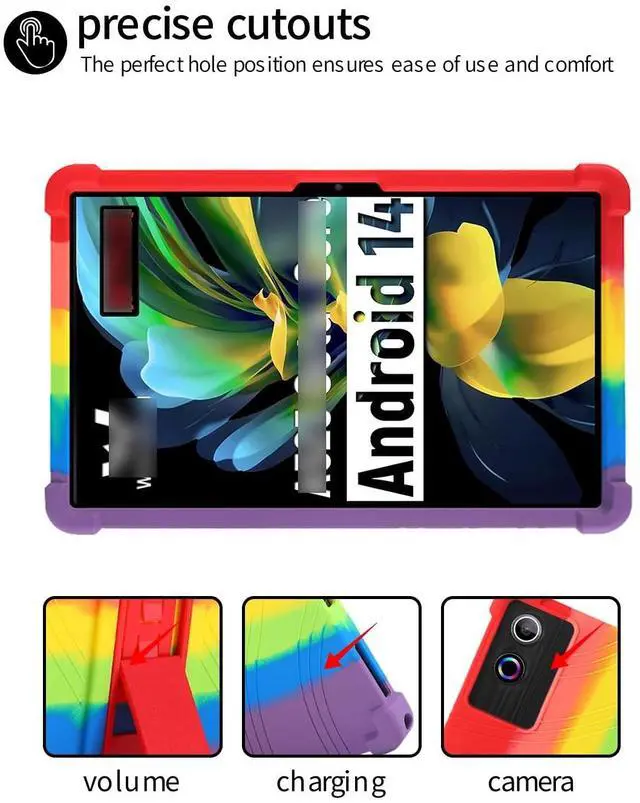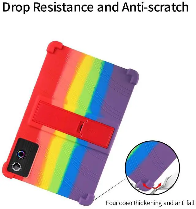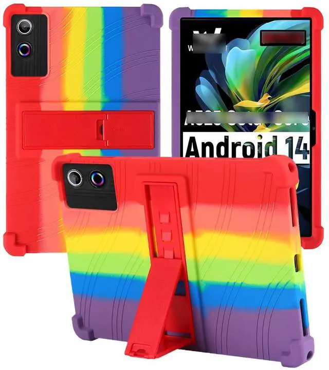 for ROWT A10 Tablets Case 10 inch,BOVUGAC Soft Silicone Adjustable Stand Shockproof Kids Friendly for ROWT A10 Tablets(Rainbow)
