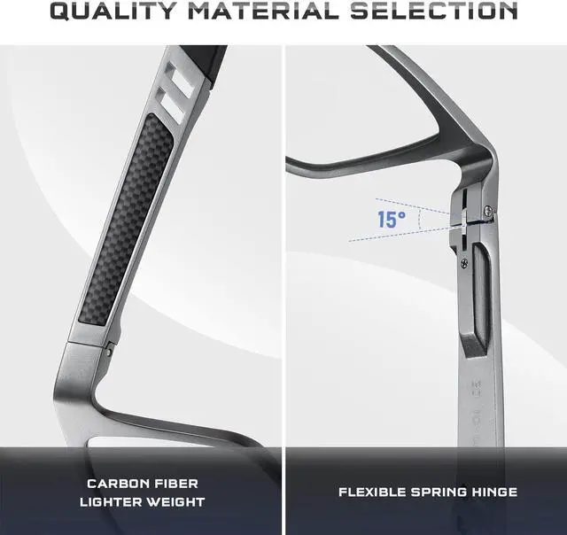 ^^ High quality gaming glassesUpgraded aluminum-magnesium alloy frame for lighter weight. With high strength, extrusion resistance. Matching TEP material, non-slip, enhance the comfort of wearing. ^^ Perfect for All occasionsReglaaly Anti-Blue Light glasses are perfect for use in the office, reading, computer games. Let the casual frame design make you look professional and stylish while working or playing video games. ^^ Comfortable to wearThe adjustable nose rest and flexible hinge design make the glasses fit your face better and can be adapted to any face shape.