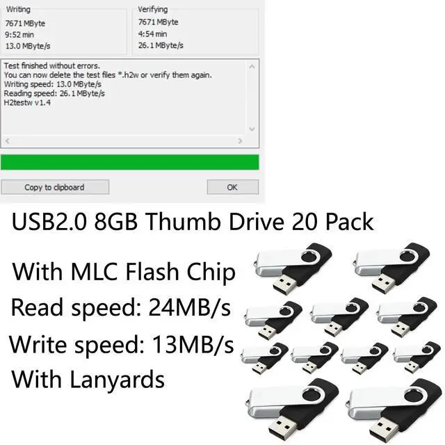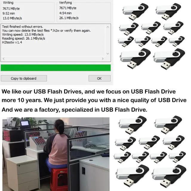 speed: 10MB/s, with a MLC flash chip. Whether it is 8GB 2 Pack or 8GB 10 Pack, or 8GB 20 Pack, or 8GB 50 Pack, or 8GB 100 Pack, they are the same 8GB flash chip. ^^ 8GB USB drive 20 Pack Plug then starts to transfer. Operating temperature range of 8GB thumb drive 20 Pack ^^ USB 2.0 8GB flash drive 20 Pack are between -8 and 42. 8GB flash drives 20 Pack USB memory stick. The size is 2.32 * 0.75 * 0.39 inches, Mini USB drives are easy to carry. ^^ 2.0 8GB twister USB flash drive 20 Pack, 8GB flash drive pack 8GB USB stick, with Metal clip and plastic housing body with 360 rotated design. ^^ We are specialized in USB flash drive more 10 years. We focus on German market on B2B. We can do customized logo for you.