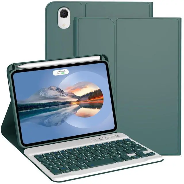 Divufus Keyboard Case for iPad mini 7th Generation (A17 Pro) 2024 / 6th Gen 2021 8.3 Inch [Magnetic Detachable Wireless Keyboard][Support 3 System] Flip Stand Case with Pencil Holder, Dark Green