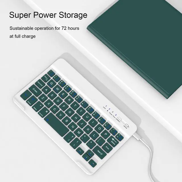 Long Life Battery&Rechargeable Slim Bluetooth Wireless Keyboard&Instant pairing- 2-3 hours full charge, work for more than 80 hours, stand by for 130 days. It even enters into sleep mode automatically if not in use for 15 minutes. Just Press any key to wake up.Mechanical scissors keyboard, quick rebound, press smoothly.
