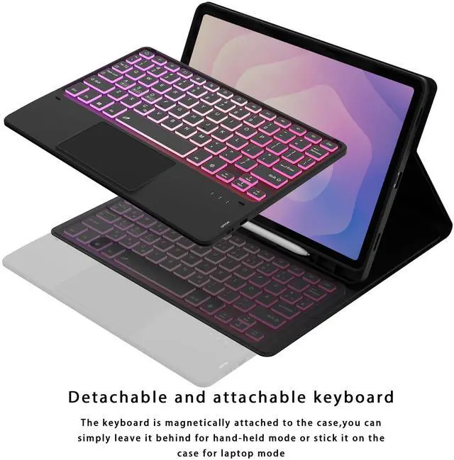 NOTE: The Tablet and S Pen are NOT included; please verify your device model in "Settings" > "About Tablet" before purchase ^^ Touchpad Keyboard Case for Galaxy Tab S11 2025 - Smooth Touch Keyboard Cover Compatible for Samsung Galaxy Tab S11 11-inch, enjoy an excellent notebook experience, bringing a special feeling to your Samsung Galaxy Tab S11 2025, perfect for travel needs, business or school use, it's very sturdy for when you want to use the S11 5G 2025 Tablet for watching Netflix or typing. The keyboard itself is very easy to use, and makes it feel very laptop like ^^ 3 Zone 7 Colors Backlit Keyboard - for Samsung Galaxy Tab S11 11-inch tablet case with keyboard Type comfortably using the familiar laptop-like keyboard. with a full row of shortcut keys and well-spaced 3 level backlit keys, 3 brightness levels let you work comfortably on the go, day or night, anytime. You can adjust 3 areas of the keyboard to your favorite color according to your preferences, which makes your keyboard more stylish. It is convenient for operation under dim light, bring you a visual enjoyment ^^ Detachable Keyboard for Tab S11 11-inches - PU leather case with keyboard compatible with Samsung Galaxy Tab S11 11.