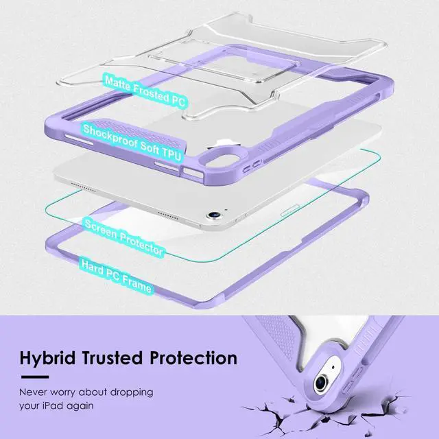 ^^ [Three-in-One Cover]: Offers the difference by Ultra Hybrid protection Design, Hard Matte Frosted PC back provides strong support, Anti-Fingerprint and Anti-Scratch. and Soft TPU frame protects your iPad from shocks, drops, and impacts. Front Screen Protector cover prevents scratches without compromising sensitivity. ^^ [ Slim and