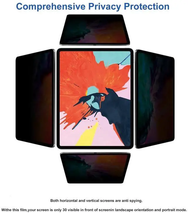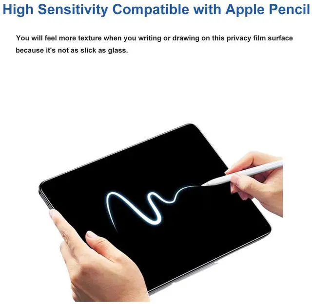 Onlookers will only see a dark unclear screen when attempting to view the information from a side angleHow to stick iPad Screen Protector? 1. Clean the iPad screen with lint-free cloth. 2. Clean the screen with alcohol wet wipe then dry wipe. 3. Remove the dust of the screen with dust absorber. 4. Take off the adhesive backing cover on screen protector. 5. Line up screen protector and attach to iPad screen. 6. Use the lint-free cloth to squeeze out excess air bubbles.