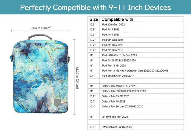 Inch Tablets: Dadanism 9-11 inch tablet carrying case is compatible with iPad 10th Gen 10.9 2022, iPad (A16) 11" 2025, iPad 10.2" 9th 8th 7th Gen 2021 2020 2019, iPad Air 11" M3 M2 2025 2024, iPad Pro 11" M4 M2 2024-2018, iPad Air 5th 4th Gen 10.9 2022 2020; Galaxy Tab A9+ Plus 11" 2023, Galaxy Tab S9 FE 10.9" 2023, Galaxy Tab A8 10.5", Galaxy Tab S9 S8 S7 11", Galaxy Tab S6 Lite 10.4"; reMarkable 2 10.3"; and other 9-11 inch device.