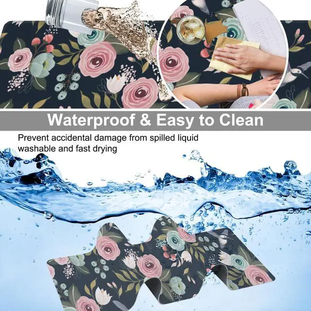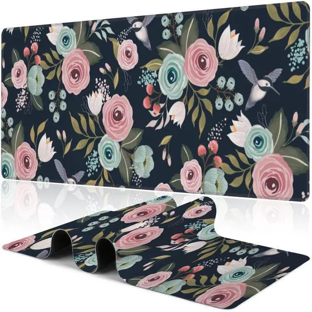 Colorful Flowers and Birds Desk Mat,Large Spring Floral Bird Gaming Keyboard Mouse Pad,Non-Slip Rubber Base Desk Pad Thick Stitched Edges Waterproof Mousepad Mouse Mat 31.5"x11.8"