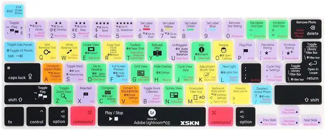 : Item typekeyboard skin/protectorSuitable device2019 released New MacBook Pro 16 inch A2141 and 2020 released New MacBook Pro 13.3 inch A2251 A2289 A2338 M1 Keyboard US and EU universal versionProduct materialSilicone materialProduct shortcuts keyboard designLightroom CC Shortcuts design in English, QWERTY character layout, US and EU universal versionProduct protectionUpper side adopted rubber coating, gives you a comfortable soft touch feeling and protect the keyboard cover from losing color; lower side is shiny surface, make the keyboard cover fit perfectly on your keyboard without any sticker/glueProduct
