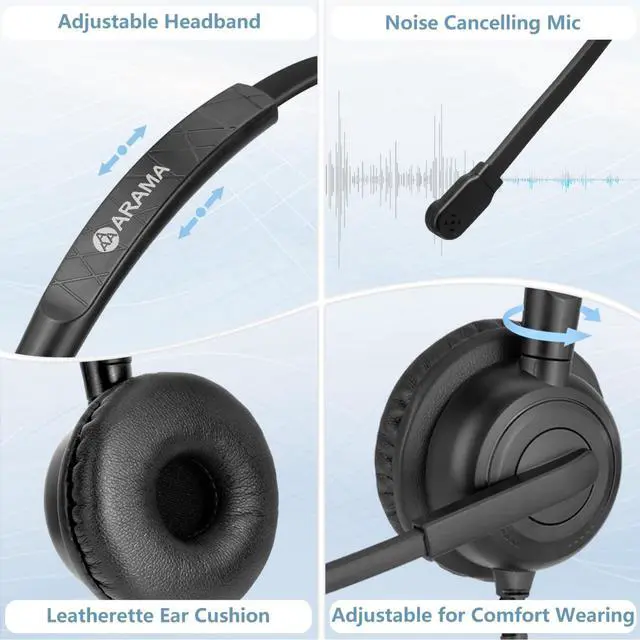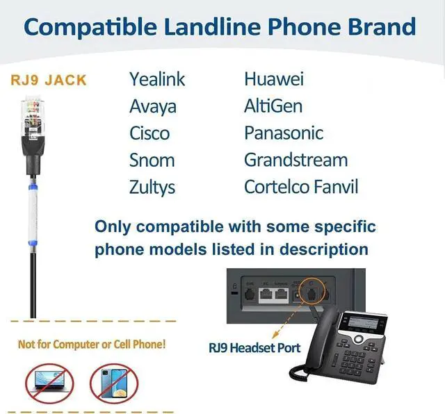 Yealink IP phones models: Yealink IP T23G, T27G, T29G, T32G, T33G, T38G, T40G, T42G, T46G, T48G, T49G, T41S, T42S, T46S, T48S, T52S, T53W, T54W, T57W, T55A, T56A, T58A, T42U, T43U, T46U, T48U, T20P, T21P, T22P, T26P, T27P, T28P, T40P, T41P, Grandsteam GXP 1615 1620 1625 1630 2130 2135 2140 2160 2170 3240 3370 ^^ Clear sound qualityThe sound coming from the office phone headsetis clear; its noise-canceling microphone ensures your voice is transmitted with exceptional clarityEnjoy high-definition calls ^^ Comfortable to wearThe headset for office phone features multi-directional adjustability to fit your head shape, while memory foam cushions distribute pressure across the ears for all-day comfort. ^^ Durable materialsThe headset for landline phone is made of light metal, resistant to bending and breaking, and less prone to deformation. ^^ Easy to UsePlug the telephone headset jack into the phone and press the button to start using it, no need to download the connection APP, don't worry about the signal will be disconnected