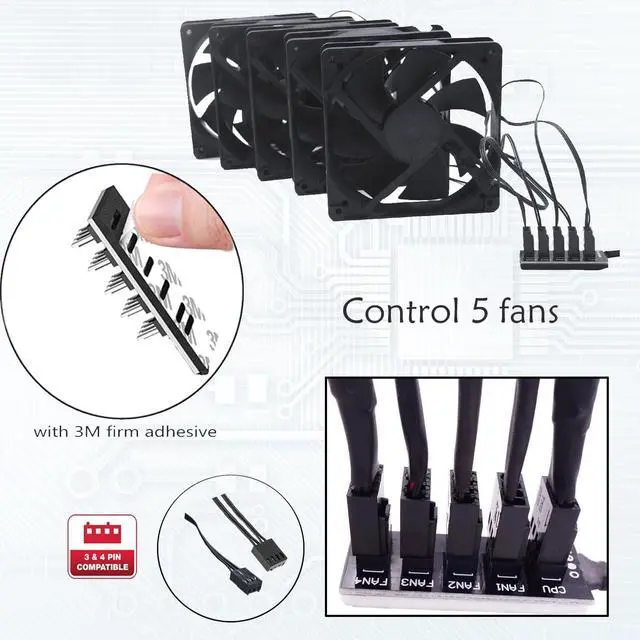 It can control 5 fans simultaneously, better power supply for PC computer case internal motherboard fans, Widely Compatible with 12V 4-pin and 3-pin fans.