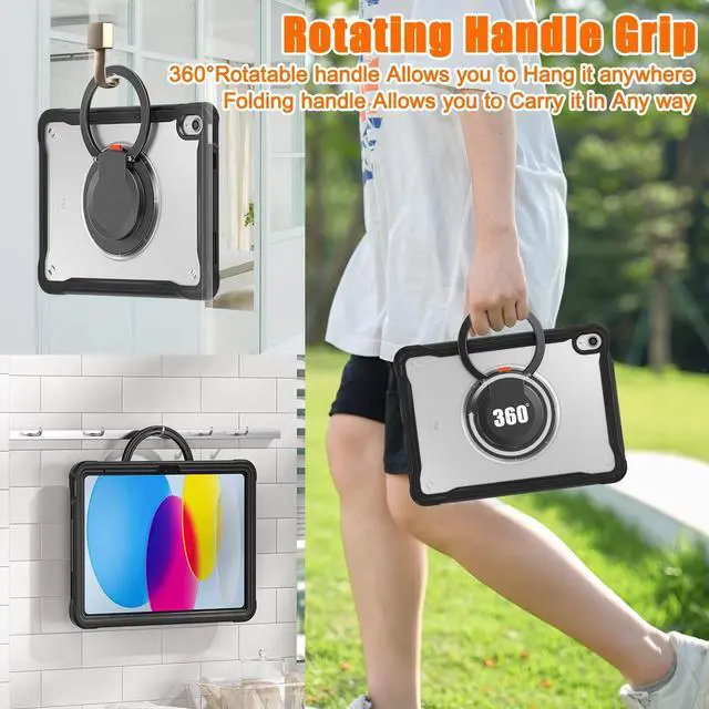 Stand Handle: The 360 rotating kickstand lets you position your ipad 10th generation in both horizontal and vertical angles for versatile viewing. It's stable and adjustable, perfect for activities like reading, typing, browsing, or video calls ^^ 2-in-1