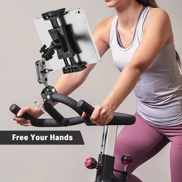 ^^ Hands-Free ANYWHERE: Unlock productivity and entertainment hands-free! The adjustable design provides the best distance and relieves neck strain for watching fitness instructional videos or TV shows, perfect for watching sports channels on your tablet while working out on a treadmill or gym cardio training equipment (with handles) and elliptical machines.
