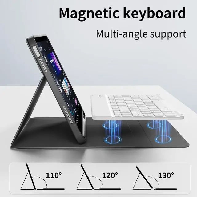 Bluetooth Keyboard - This cover for iPad 11th generation magnetically attaches the removable keyboard (supporting Windows, iOS, and Android), instantly transforming your tablet into a portable laptop, perfect for working, typing, and watching