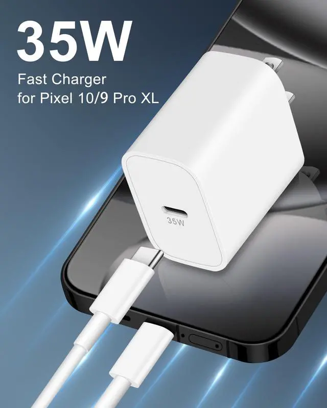 Widely Compatibility: 35W USB C Fast wall charger for Google Pixel 10/10 Pro/10 Pro XL/10 Pro Fold/9/9 Pro/9 Pro XL/9 Pro Fold/8/8a/8 Pro/7/7a/7 Pro/6/6a/6 Pro/5/5a/4/4a 5G/4 XL/3a/3a XL, Pixel Tablet, Pixel Slate, Pixelbook, Samsung Galaxy S25/S24/S23/S22/S21/S20/Ultra, Note 20/10, LG, Moto, Tablet, Android Phones, and more ^^ Safe and