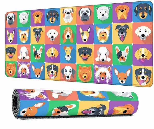 Y YIHANGBEST Cute Different Breeds of Dogs Face Portrait Animal Puppy Large Gaming Mouse Pad Long Mousepad Non-Slip Rubber Base Keyboard Mat for Desk,Office,Home 35.4"X15.7"