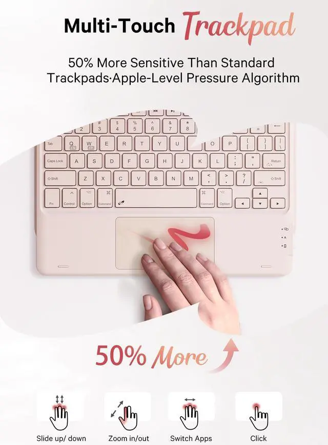 ^^ Multi-touch Trackpad: this keyboard case for iPad (A16) 11th/10th generation has an integrated multi-touch trackpad that perfectly adapts to the IOS system, with various trackpad gestures, providing a comfortable usage experience while clicking, scrolling, and swiping through content effortlessly. Allows you to turn your tablet into a laptop. ^^ Magnetically Detachable
