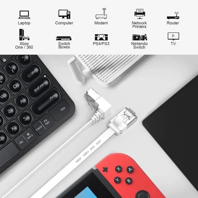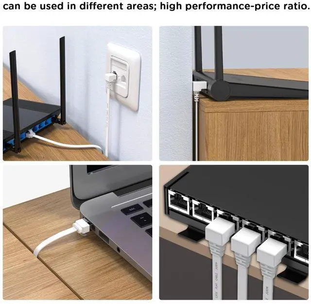 Downangle: the crystal head shrapnel switch is up and the cable is down If you buy in the wrong direction, you can try inverting the RJ45 Female LAN wall socket. ^^ Flat Cat6 ethernet cable Fast transmission of up to 10Gbps; bandwidth of up to 250MHzHigh transmission rate, good compatibility, and convenient executio. Suitable for both outdoor and indoor use. Compatible with Cat7/ Cat 6/Cat 5e / Cat 5 Ethernet cables ^^ Cat6 patch cable connects all the hardware destinations on a Gigabit Local Area Network (LAN), such as PCs, computer servers, printers, routers, switch boxes, network media players, NAS, VoIP phones, PoE devices, and more;