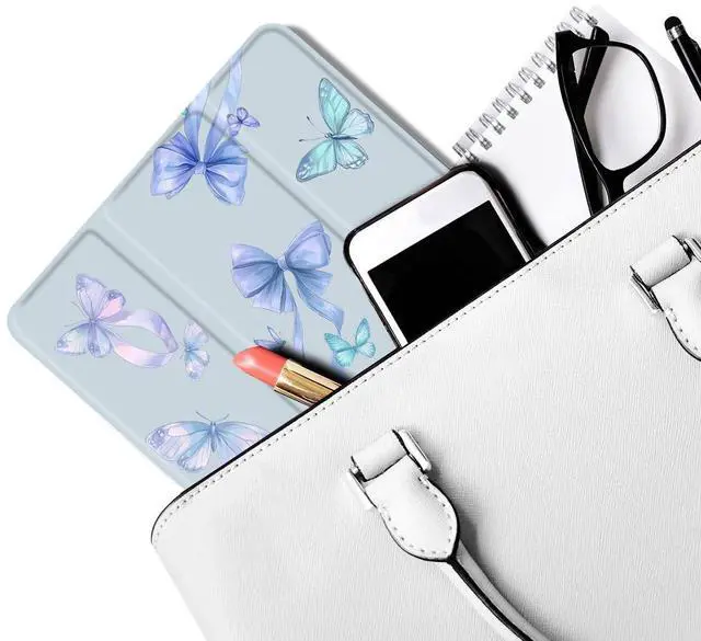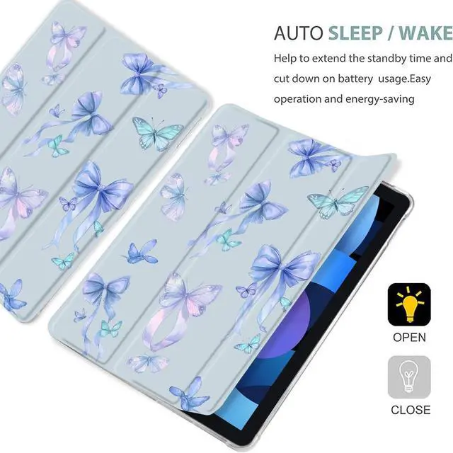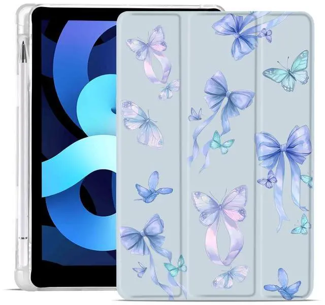 MAYCARI Butterfly Wreath Bows Fashion Case for iPad 10.9 inch 2022 with Pencil Holder, Original Pattern iPad 10th Generation Soft TPU Back Protective Cover Shell, Auto Sleep/Wake Slim Shell - Blue