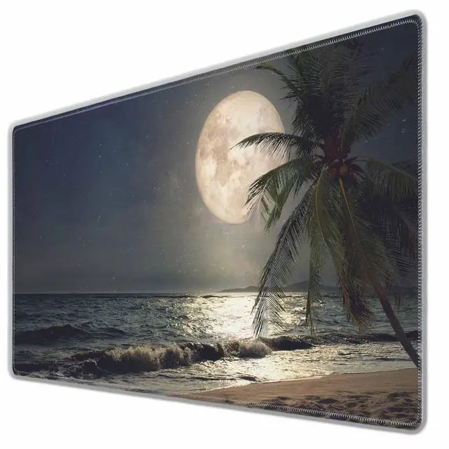 Y YIHANGBEST Tropical Beach Mouse Pad Beautiful Star in Night Sky Full Moon A Palm XL Gaming Mouse Keyboart Mat for Desk,Computer,Office,Home 35.4"X15.7"