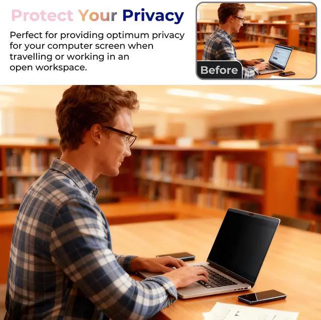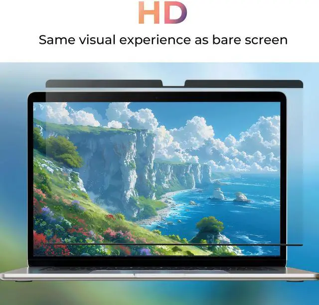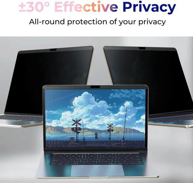 ^^ Double protection: eye protection and anti glareUsing imported high-quality optical materials, it can effectively filter 95% of harmful blue and ultraviolet light, relieving eye fatigue caused by long-term use; The magnetic Mac Air 13 inch privacy screen has a matte surface that can eliminate 92% of ambient light reflections and remains clear under strong light. At the same time, the scratch resistant coating adds a physical layer of protection to your precious screen, resisting daily wear and tear. ^^ Close to Native Visual Experience, High-Definition The magnetic privacy macbook 13 inch is designed for precise 1:1 molding of 13inch MacBook Air, perfectly fitting without white edges. Using ultra-high transparency materials, while protecting privacy, the original screen color and clarity are maximally preserved, bringing an unparalleled ultra clear visual feast that immerses viewers and office workers.